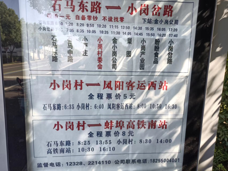 第一班8:30/第二班14:00 (途径凤阳县城)