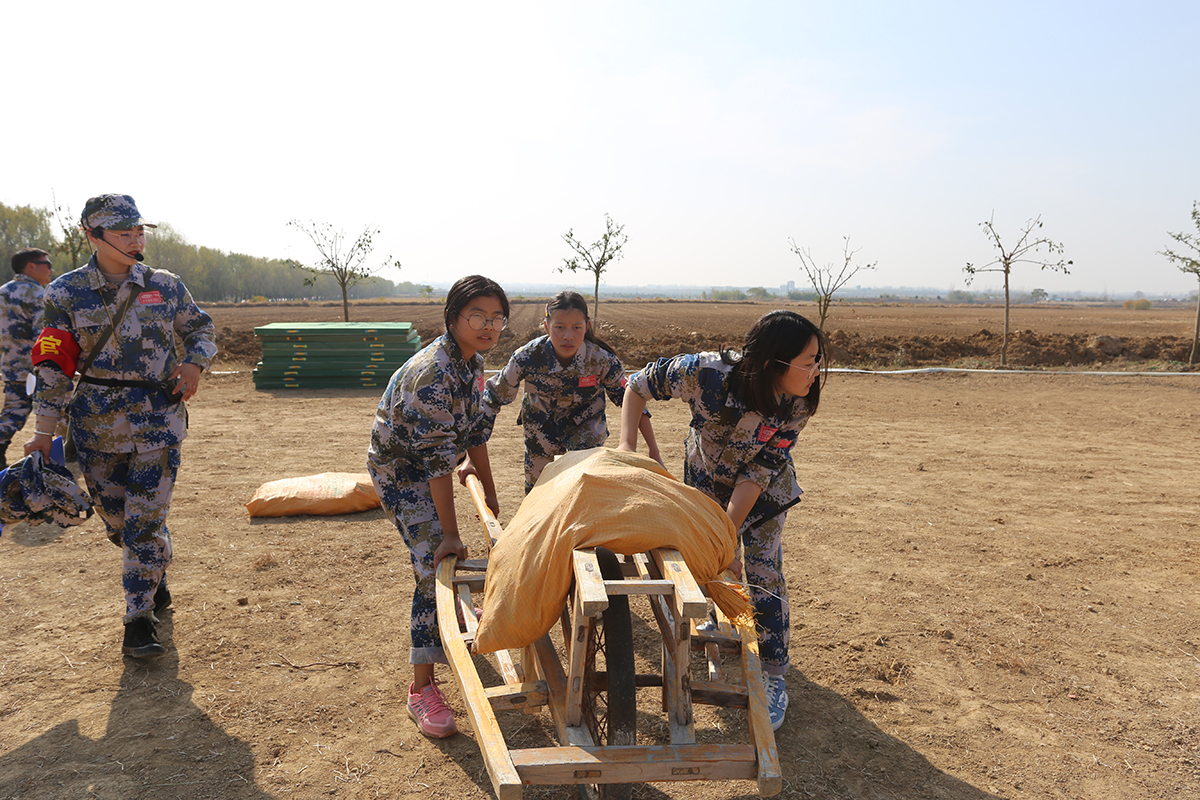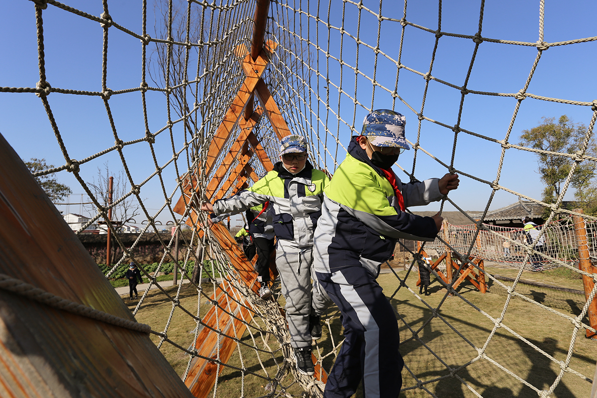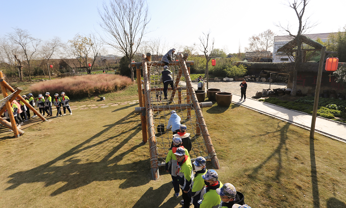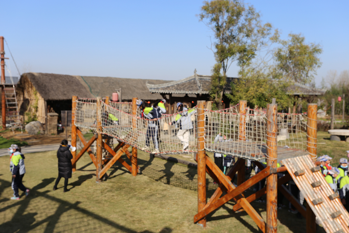 进行丛林穿越等军事拓展,与滚铁环、跷跷板等农趣互动游戏,寓教于乐,在玩耍中培养勇敢刚毅的性格与互帮互助、共同进步的品德。